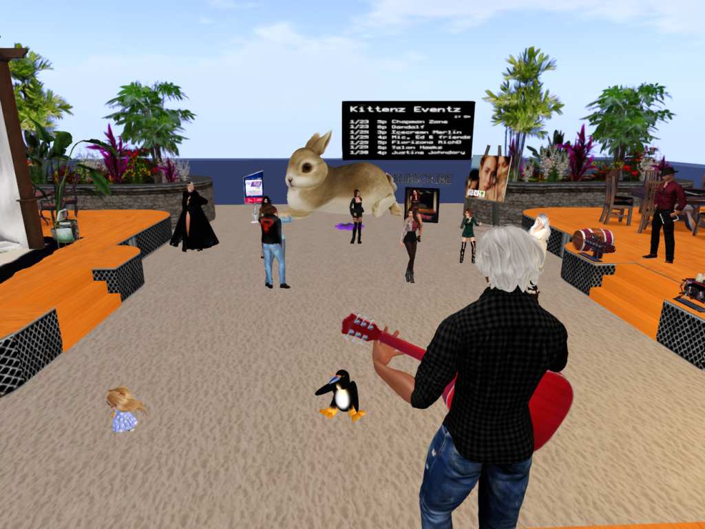 Kittenz is a performance and dancing space in Second Life focused on live musicians and singers from around the world using real‑time streaming technology.